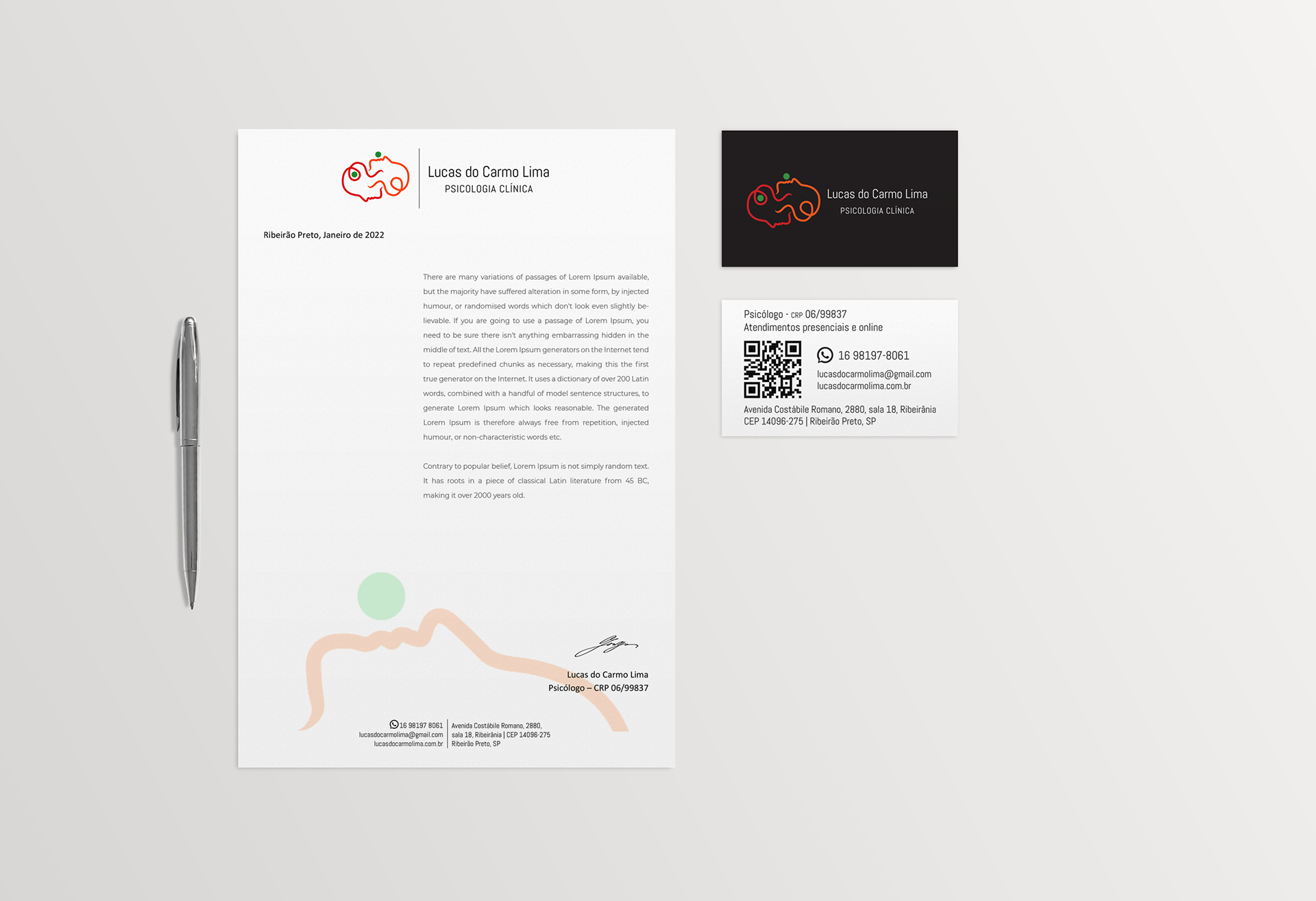 Logotipo, placa do consultório, cartão de visita, papel de carta e fundos para instagram